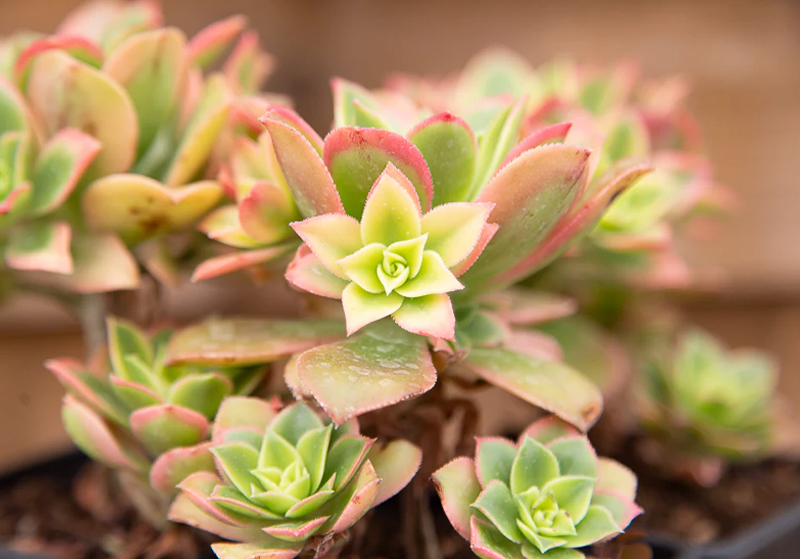 Wässern Sie Ihre Baumartigen Aeonien regelmäßig, aber sparsam. Lassen Sie den Boden zwischen den Bewässerungen leicht trocknen, um Wurzelfäule zu vermeiden. Achten Sie darauf, dass Sie die Pflanzen nicht überwässern, insbesondere im Winter, wenn das Wachstum langsamer ist.