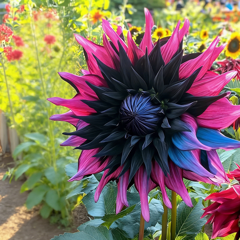 🔥 Witness the stunning elegance of the Giant Black Sun Dahlia, a rare and captivating variety that oozes mystery with its deep, soft petals and bold color combinations. A true show-stopper, this extraordinary sunflower contrasts with the traditional golden blooms, adding an air of mystery and sophistication to any garden.